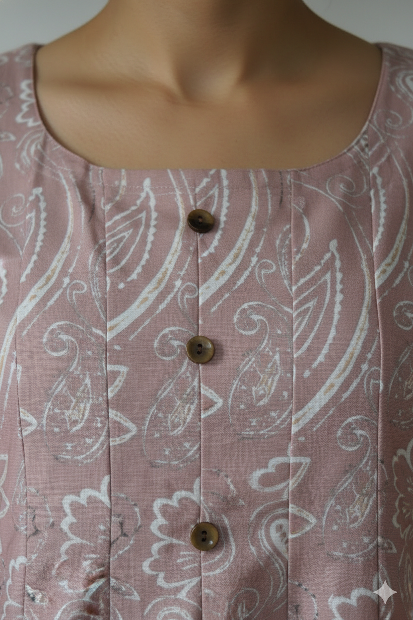 Blush Grace is a soft dusty rose printed kurti that blends simplicity with sophistication. Designed for modern women, this elegant long kurti is ideal for office wear, brunch outings, and daily ethnic styling. Lightweight, comfortable, and easy to style with cream or beige bottoms.