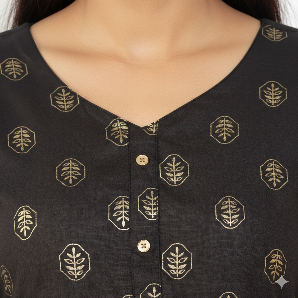 Classic black Anarkali kurti with gold detailing